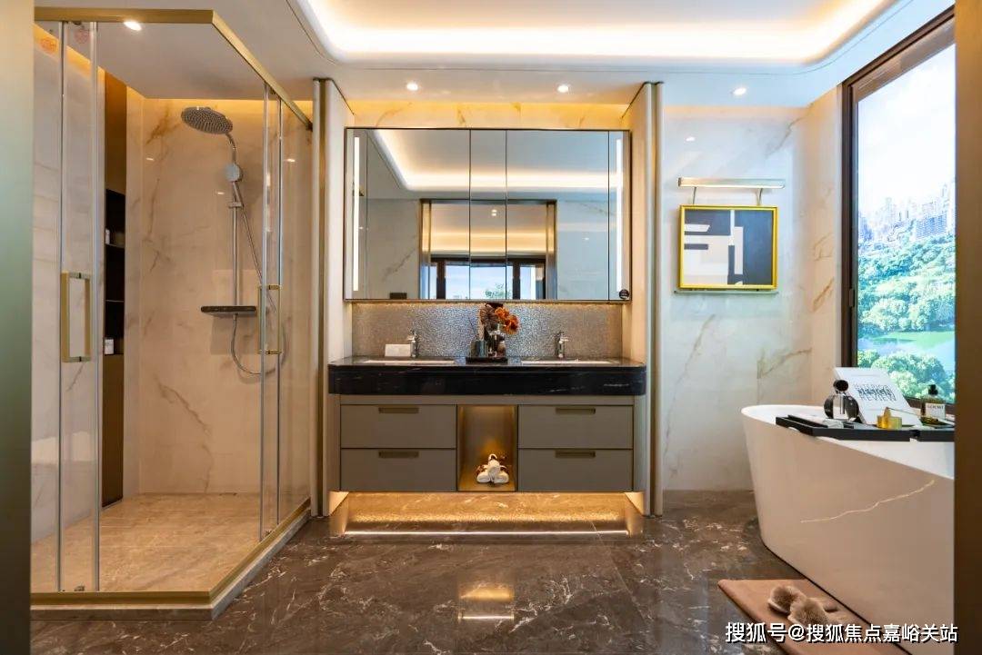 更有众多人性化细节,包括加热毛巾架,淋浴屏△•,定制台盆柜+镜柜等,省去后期定制比价的烦恼。
